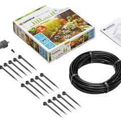 De GARDENA Micro-Drip-System Startset S voor 15m rijplanten is ideaal voor een waterbesparende en eenvoudige besproeiing van rijen planten en kwetsbare planten (bijv. tomaten). Het druk reducerende basisapparaat is via een slang verbonden met de waterkraan. De druppelbuis is om de 30 cm uitgerust met zelfreinigende druppelaars en zorgt zo voor een gelijkmatige besproeiing van rijplanten en plantenbedden.