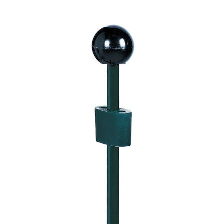 De grondpin heeft aan de bovenkant een zwart bolknopje. Dit staat niet alleen sierlijk, het zorgt er ook voor dat je de grondpin gemakkelijk in de aarde kunt duwen. Bovendien wordt het oog beschermd, mocht de grondpin onverhoopt in je gezicht komen.