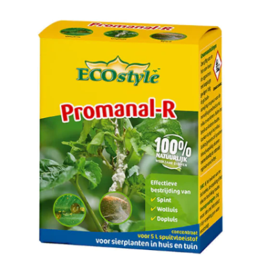 ECOstyle Promanal-R is de meest effectieve oplossing om jouw planten te beschermen tegen spint, wolluis en dopluis. Het stopt de beschadiging aan bladeren en plant. Zodra aantasting van spint in de siertuin of op balkon- en kamerplanten wordt waargenomen, pas dan Promanal-R direct toe.