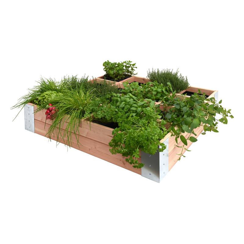 Douglas minigarden vierkante meter 100 x 100 x 20 cm, onbehandeld. Met metalen hoeken. Inclusief anti-uitspoeldoek.
