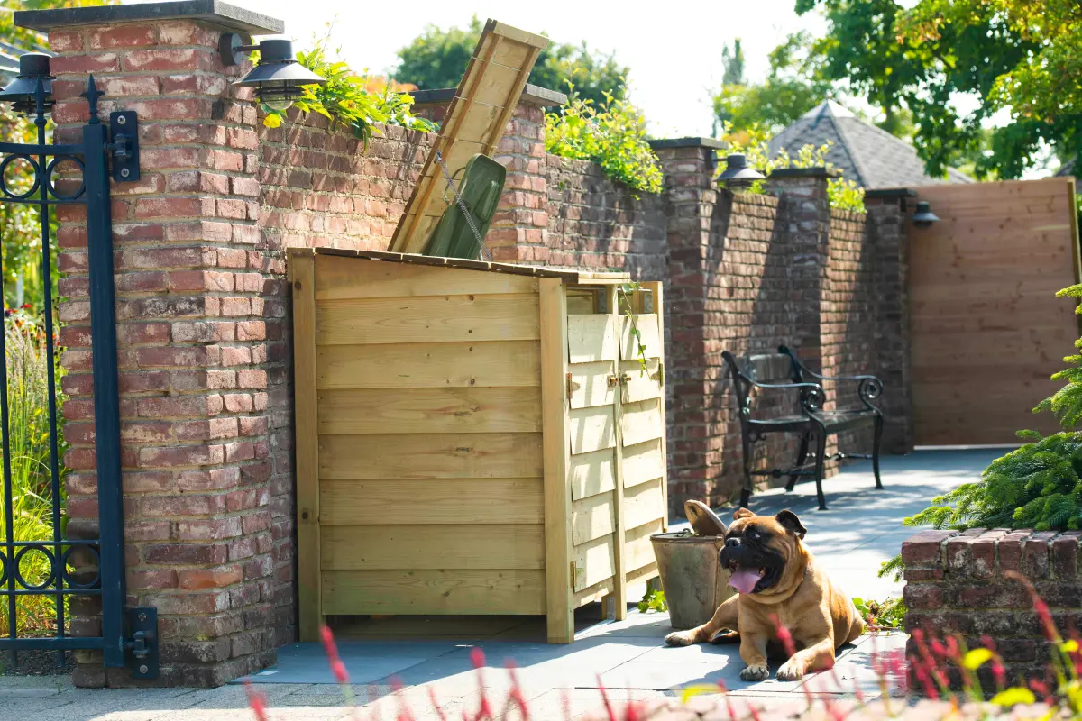 Deze stevige Noord-Europees vuren containerkast wordt geleverd met prefab wanden met Zweeds rabat profiel. Inclusief achterwand, beslag, springveer om de klep open te houden en kettinkje om de containerklep aan te hangen.